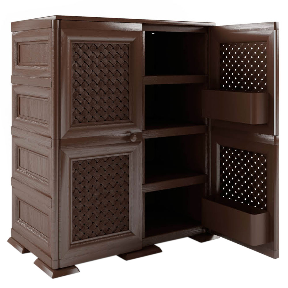 Большой семье нужен вместительный шкаф под обувь: детскую, подростковую и взрослую. Идеальным решением вопроса послужит обувница пластиковая. Внутри мебельной конструкции расположено несколько полочек для размещения ботинок, сандаль, шлепанцев и пр. Дверцы изделия удобно закрываются и раскрываются за счет надежных петель и компактных ручек круглой формы.