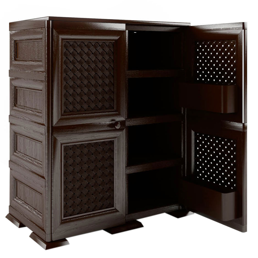 Фасады декорированы декоративным узором Сетка, имеют отверстия для естественной вентиляции. Дверцы распашные, в закрытом состоянии держатся благодаря магнитам.