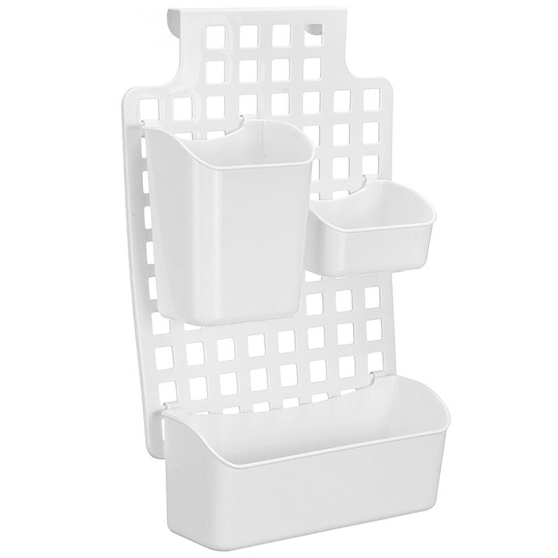 Органайзер состоит из основы и трёх контейнеров разного размера, они крепятся на сетку в любом порядке с помощью крючков.