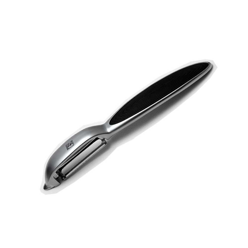 Овощечистка изготовлена из хромированного цинкового сплава серебристого цвета.
