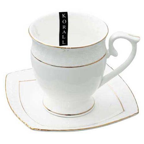 Блюдце квадратной формы, подчеркивает нежность формы кружки.