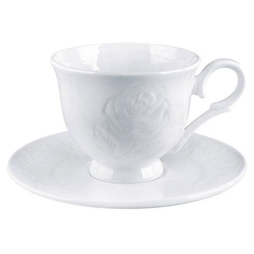 Посуда из керамики белого цвета с растительным узором "Роза".