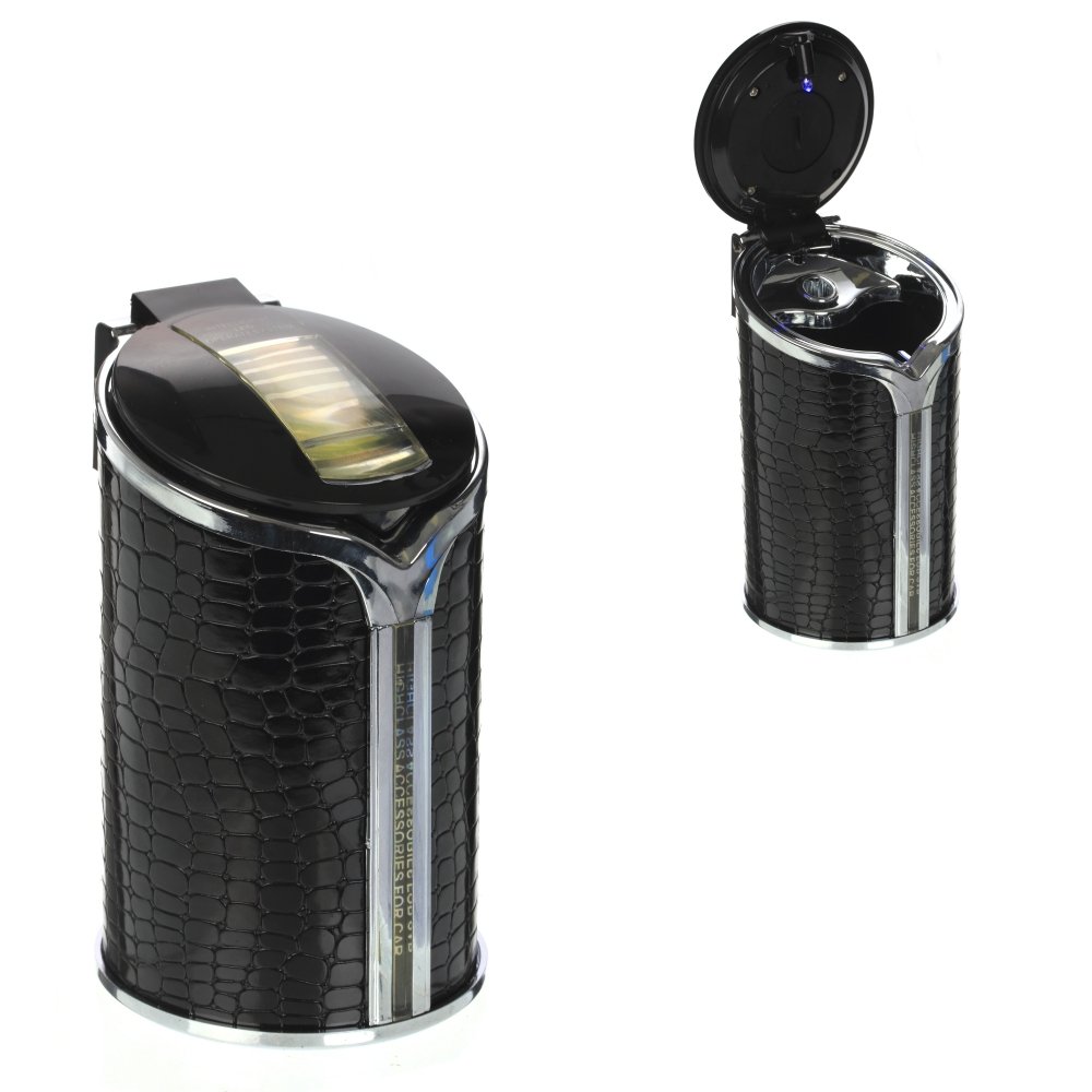 Пепельница для автомобиля в подстаканник, изготовлена из металла и полимерных материалов.