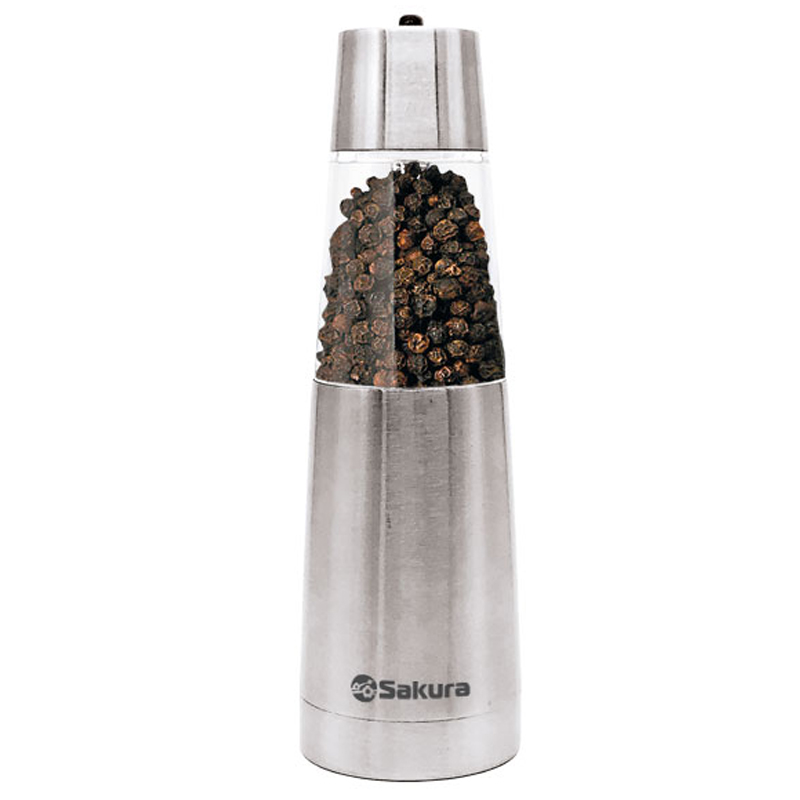 Перцемолка гравитационная Sakura SA-6646S автоматически включается при переворачивании, работа от 4хААА, качественный керамический механизм, корпуск из нержавеющей стали.