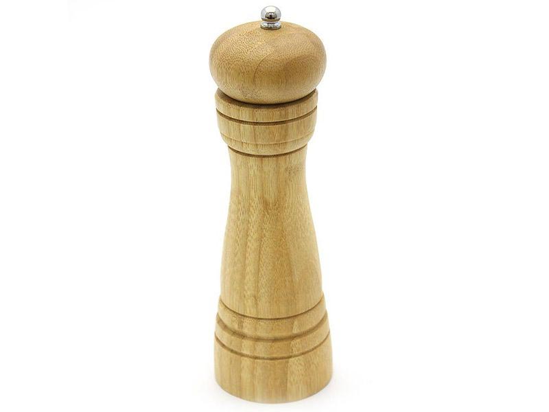 Мельница для перца изготовлена из дерева с металлическим механизмом.