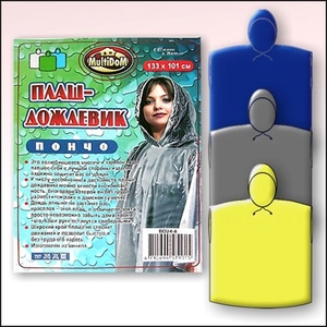 Плащ-Пончо, выполненный из полимерной пленки (полиэтиленвинилацетат), станет простым, дешевым и надежным решением в дождливую погоду.