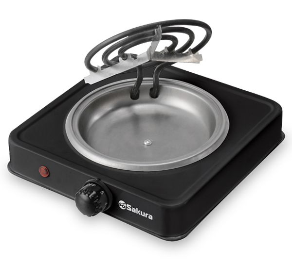 Плита электрическая одноконфорочная, 1000 Вт, диаметр 145 мм, поднимающийся спиральный нагревательный элемент.