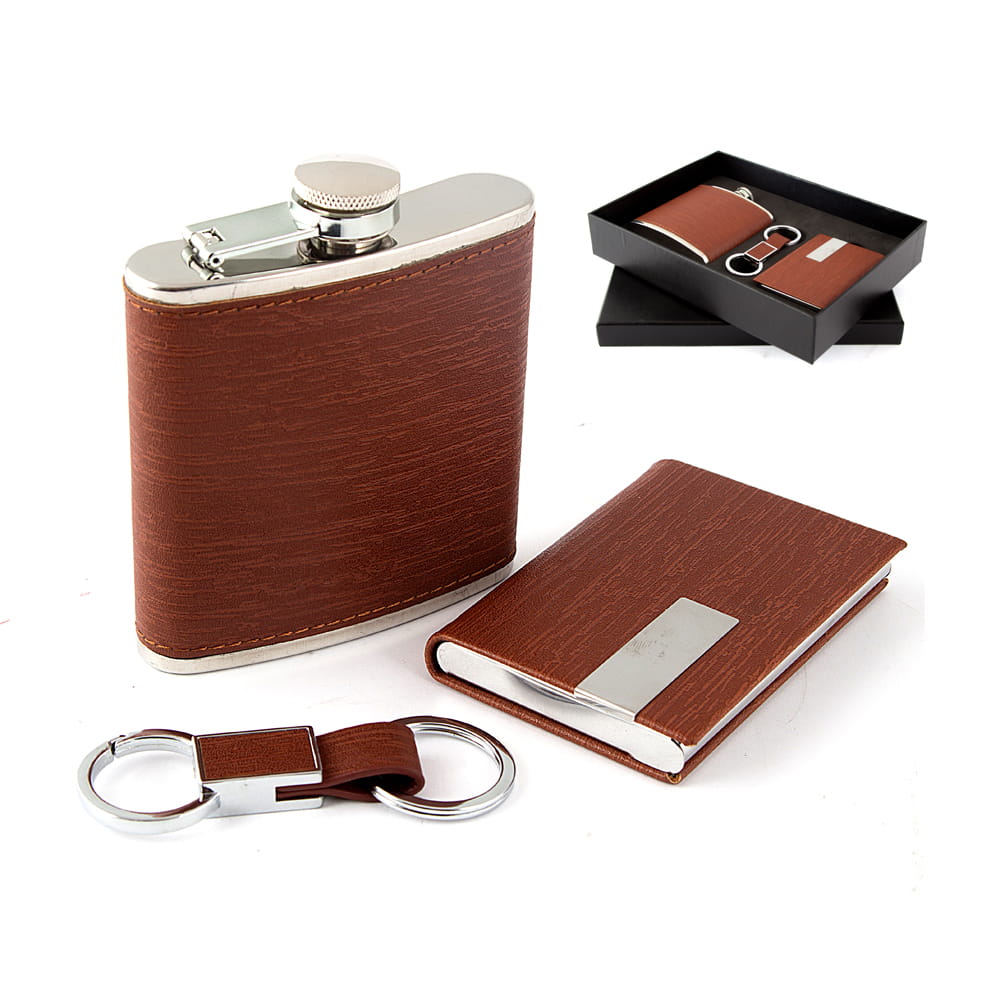 В наборе: фляжка, визитница, брелок.