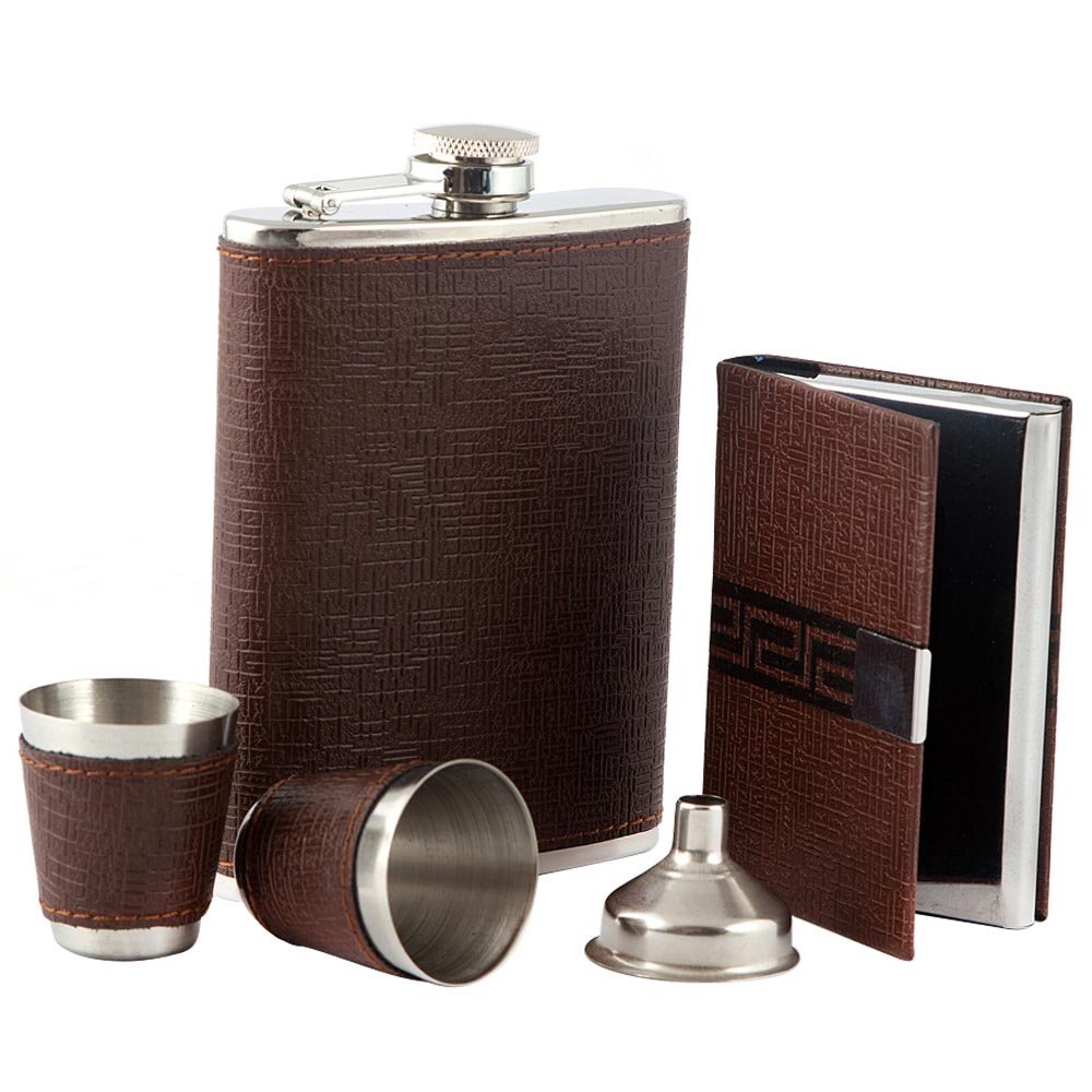 Фляга отлично подойдет для хранения как спиртных напитков, так и обычной питьевой воды. Элегантный дизайн прекрасно дополняет функциональность и делает этот набор прекрасным подарком.