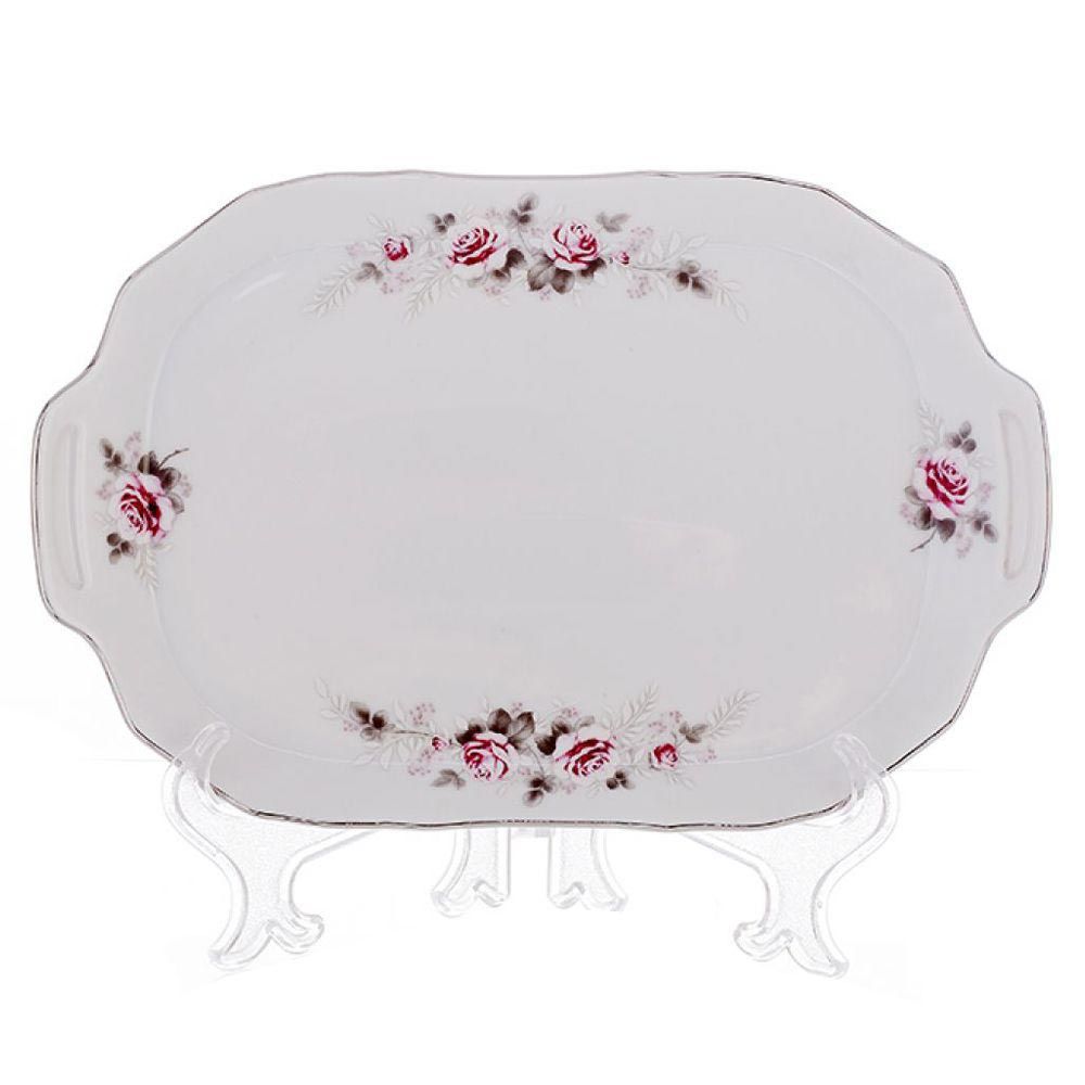 Сервировочное блюдо-поднос выполнено из фарфора.