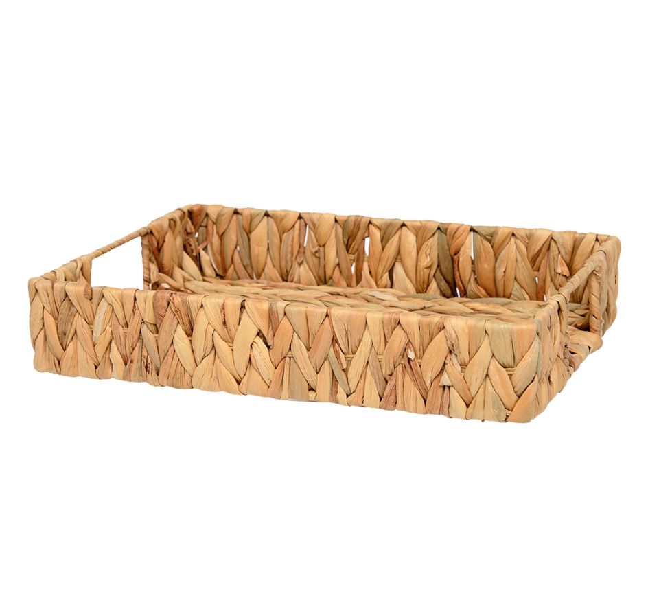 Сплетённый из водного гиацинта прямоугольный поднос с ручками из коллекции «Золотистый колос» от Natural House станет отличным функциональным решением для сервировки стола, а также открытого хранения вещей и разных мелочей, которые обычно некуда сложить. Прекрасное дополнение интерьера в стиле бохо и эко-бохо, сканди, прованс или фьюжн. 100% ручная работа. При изготовлении подноса используются только натуральные материалы, прошедшие антибактериальную обработку. Материал: водный гиацинт, металлический каркас.