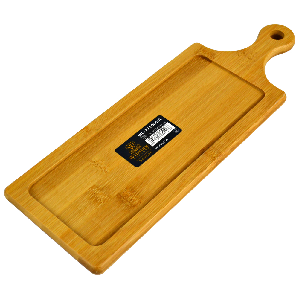 Сервировочная доска из бамбука от Wilmax — английского производителя посуды премиум-класса — поможет создать особенную атмосферу элегантности и комфорта. Предмет из натурального материала станет удачным дополнением интерьера в экостиле кухни или гостиной.