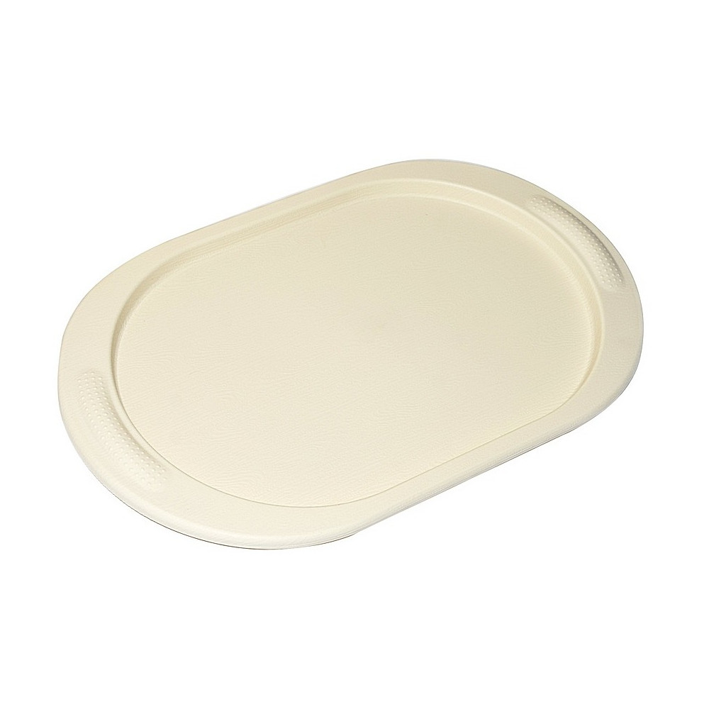 Предмет кухонной утвари из пластика для сервировки стола. Имеет оптимальный размер для использования в домашнем хозяйстве и в сфере HoReCa. Ручки-выемки по коротким сторонам подноса имеют удобный для захвата рельеф. А поверхность подноса выполнена с имитацией структуры дерева.