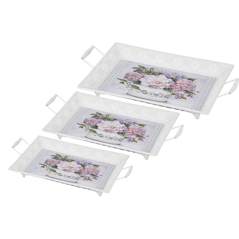 • В комплекте 3 прямоугольных подноса размером 53х32х5 см, 50х29х4, 47х25х4 см.
