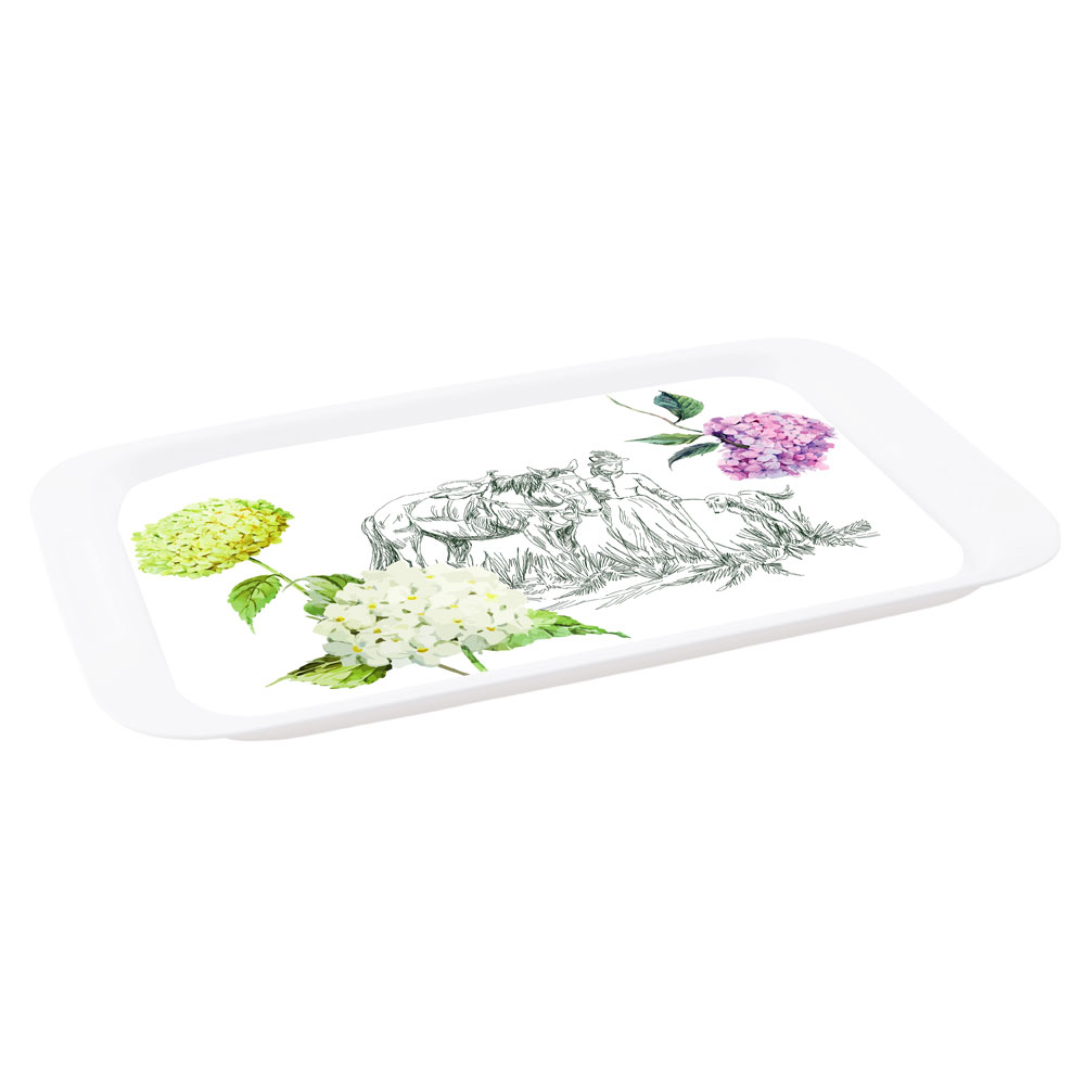 Для подачи и переноса блюд используйте пластиковый поднос «Toile de Jouy» от производителя Полимербыт. По бокам изделие оснащено удобными ручками, за которые Вы сможете придерживать его во время переноса продуктов. Поднос является прочным и вместительным, он без труда разместит на своей поверхности несколько тарелок.