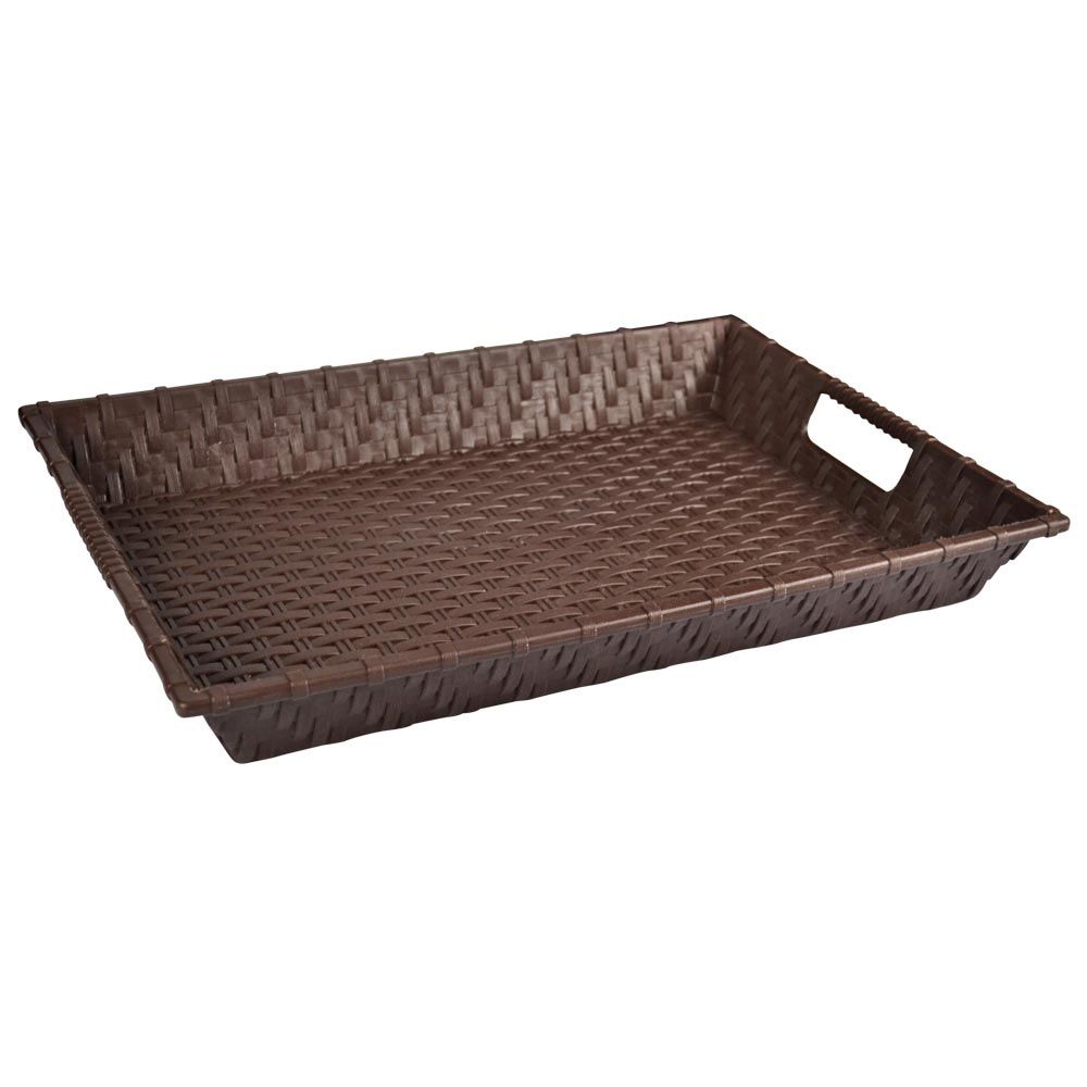 Поднос "Ротанг" выполнен из качественного прочного пластика с плетением, напоминающем ротанг.