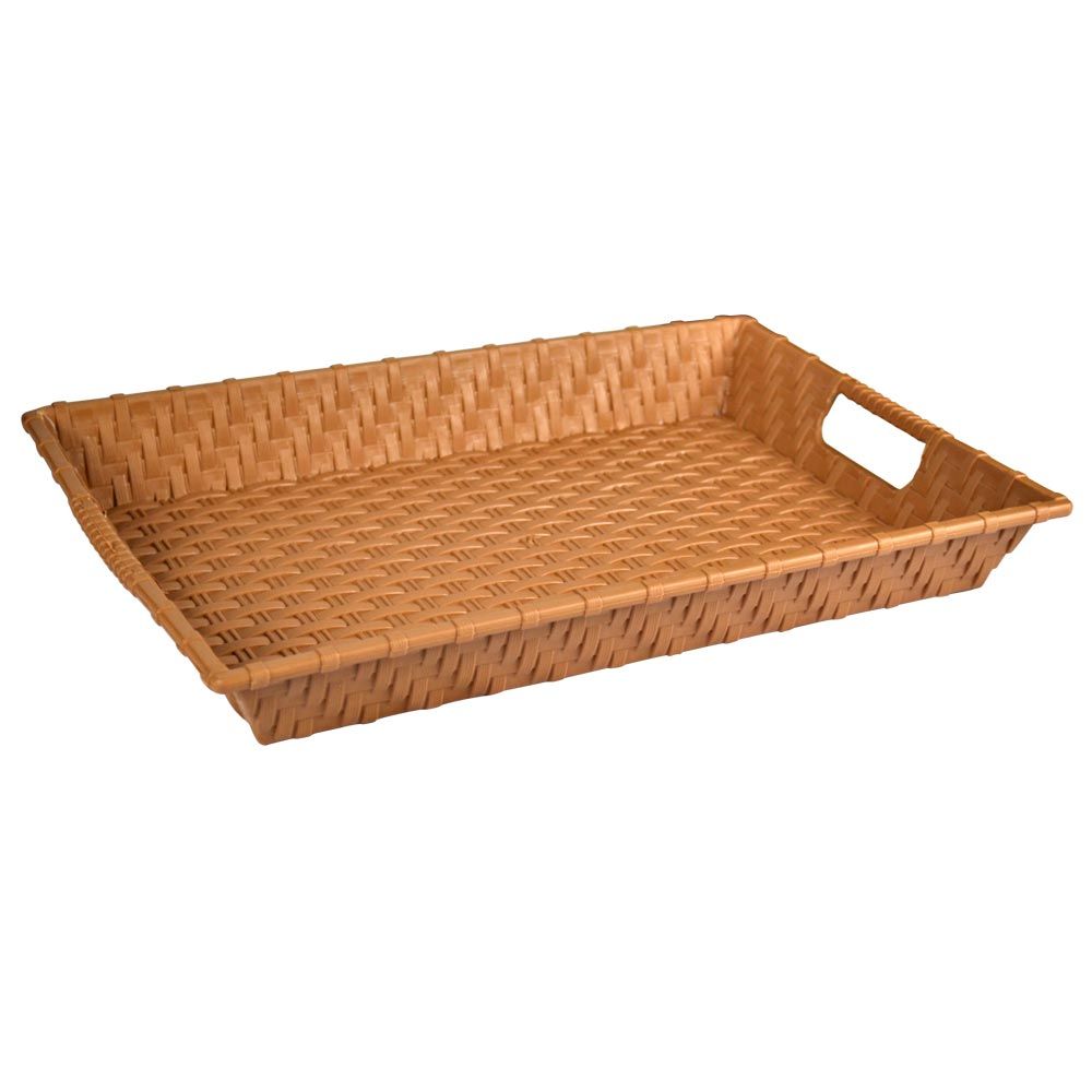 Поднос "Ротанг" выполнен из качественного прочного пластика с плетением, напоминающем ротанг.