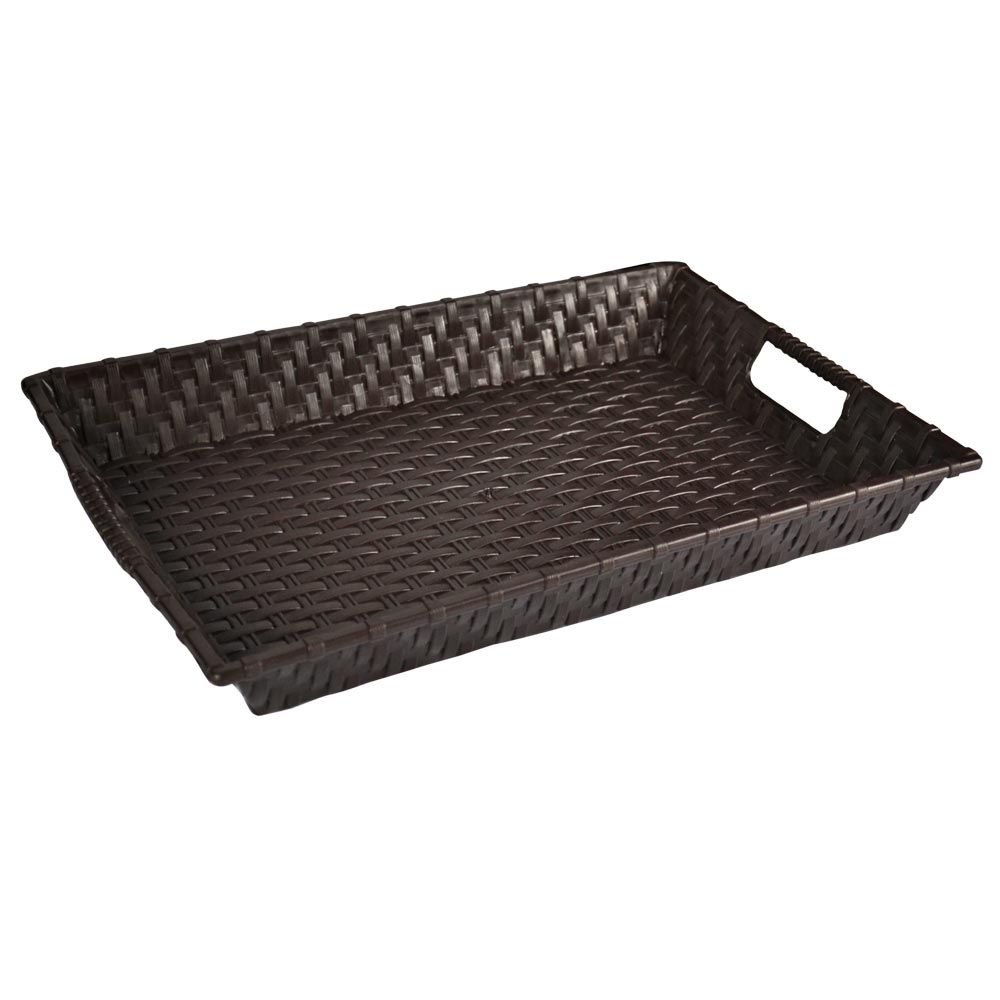 Поднос "Ротанг" выполнен из качественного прочного пластика с плетением, напоминающем ротанг.