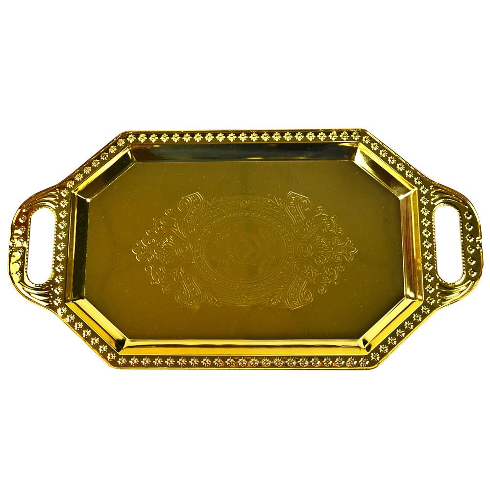 Поднос сервировочный изготовлен из высококачественного металла с гальваническим покрытием.