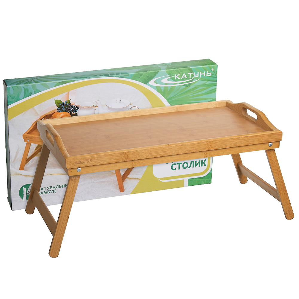 Элегантный столик для завтрака от ТМ Катунь изготовлен полностью из натурального материала - экологически чистого бамбука. Продается в брендированной картонной коробке.