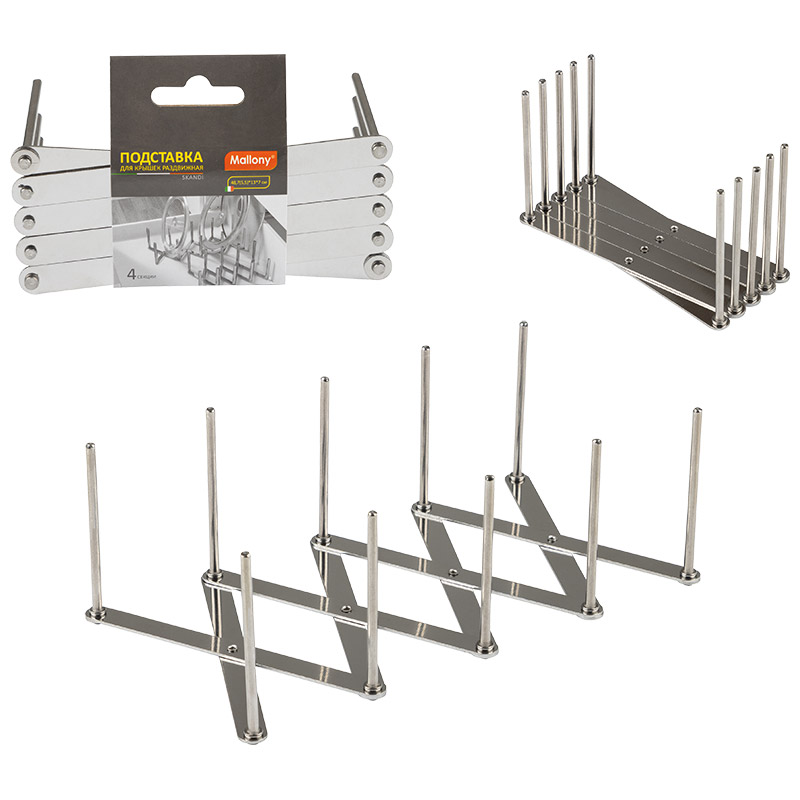 Подставка для крышек обеспечивает удобное и компактное хранение крышек, способствует созданию уюта и порядка на кухне. Регулируется по длине в соответствии с потребностями хранения. Размер:48.7(5.5)*13*7 см. Вес:160 гр. Материал: нержавеюшая сталь
