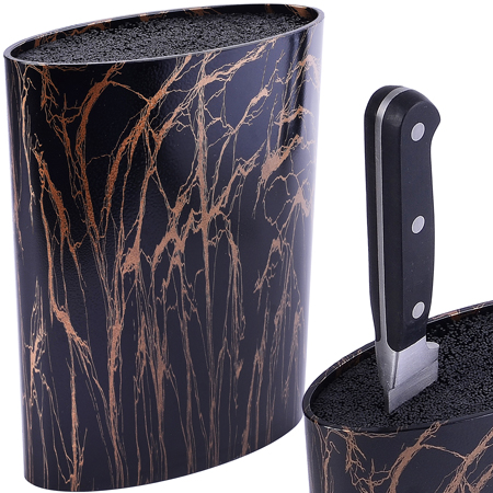 Универсальная подставка MAYER&BOCH позволит хранить ножи и ножницы любой формы, вне зависимости от их размера и лезвия. Корпус подставки выполнен из пластика, что делает ее гигиеничной и долговечной, а уникальный внутренний наполнитель состоит из тонких и гибких полипропиленовых стержней, которые легко моются. Полипропиленовые стержни наполнителя формируют структуру, подобную щетке, поэтому достаточно просто воткнуть нож в подставку, и она надежно удержит его. Полипропилен является экологически чистым материалом, устойчивым к истиранию, высокой температуре и химическому воздействию. Подставка для ножей MAYER&BOCH станет прекрасным подарком, а ее яркий дизайн станет украшением Вашей кухни. Подставка для ножей с наполнителем - отличный подарок маме, сестре, бабушке или подруге!