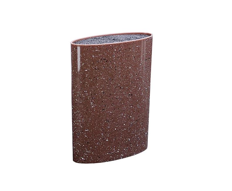 Универсальная подставка позволит хранить ножи и ножницы любой формы, вне зависимости от их размера и лезвия. Корпус подставки выполнен из пластика, что делает ее гигиеничной и долговечной, а уникальный внутренний наполнитель состоит из тонких и гибких полипропиленовых стержней, которые легко моются. Полипропиленовые стержни наполнителя формируют структуру, подобную щетке, поэтому достаточно просто воткнуть нож в подставку, и она надежно удержит его. Полипропилен является экологически чистым материалом, устойчивым к истиранию, высокой температуре и химическому воздействию. Подставка для ножей станет прекрасным подарком, а ее яркий дизайн станет украшением Вашей кухни.