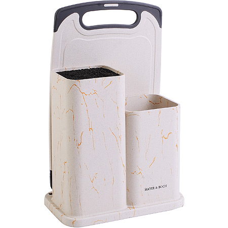 Универсальная подставка позволит хранить ножи и ножницы любой формы, вне зависимости от их формы и лезвия. Корпус подставки выполнен из пластика, что делаетт её гигиеничной и долговечной, покрыт нескользящим слоем soft-touch. Уникальный внутренний наполнитель состоит из тонких и гибких полипропиленовых стержней, которые легко моются. При необходимости наполнитель свободно вынимается и моется в посудомоечной машине. Полипропилен является экологически чистым материалом, устойчивым к истиранию, высокой температуре и химическому воздействию.Имеет два отсека: для ножей и столовых приборов, а так же в наборе разделочная доска. Подставка для ножей станет прекрасным подарком, а ее яркий дизайн станет украшением Вашей кухни. Подставка для ножей; Материал: полипропилен; Длина: 21,3 см; Ширина: 13 см; Высота: 32,5 см; Размер основного отсека: 9,5 х9,5 х 22 см; Отсек для столовых приборов: 9,5 х9.5 х 16 см; Разделочная доска:32,5х19,8х0,5см; Размер упаковки: 22,1 х 14 х 34,8 см; Вес: 1,8 кг; Страна производитель: Китай.