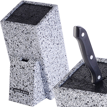 Универсальная подставка MAYER&BOCH позволит хранить ножи и ножницы любой формы, вне зависимости от их размера и лезвия. Корпус подставки выполнен из пластика, что делает ее гигиеничной и долговечной, а уникальный внутренний наполнитель состоит из тонких и гибких полипропиленовых стержней, которые легко моются. Полипропиленовые стержни наполнителя формируют структуру, подобную щетке, поэтому достаточно просто воткнуть нож в подставку, и она надежно удержит его. Полипропилен является экологически чистым материалом, устойчивым к истиранию, высокой температуре и химическому воздействию. Имеет два отсека: для ножей и ножниц. Подставка для ножей MAYER&BOCH станет прекрасным подарком, а ее стильный дизайн станет украшением Вашей кухни.