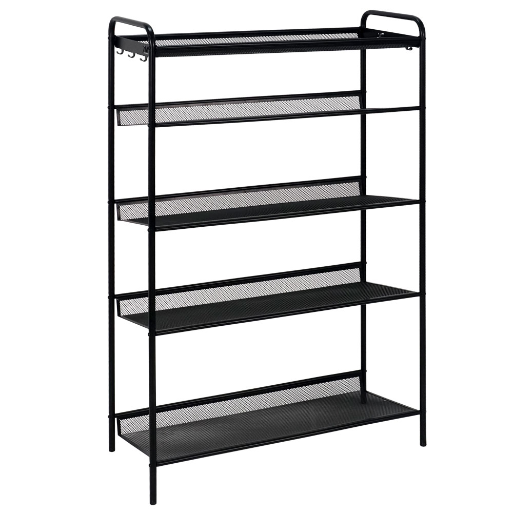 Удобное хранение в доме продлевает жизнь любимых вещей и сохраняет семейное здоровье, к тому же это экономия времени и комфортная уборка для заботливых хозяев! Рады представить вам подставку для обуви 5-ти полочную "Женева 25" от завода ЗМИ. Подставка выполнена из стали с полимерным напылением, так что влага и загрязнения изделию не страшны. Инновационная конфигурация полочек-сеток позволяет хранить детскую и дамскую обувь с тонким каблуком, а защитный бортик защитит стену от ненужной грязи. Полки расположены под наклоном, благодаря чему влага с обуви скатывается, что значительно ускоряет процесс сушки. Сверху имеется корзина- столик, куда можно положить различные мелочи. По бокам удобные крючки, которые никогда не будут лишними. Нагрузка на одну полку 8 кг, а общая вместимость до 12 пар взрослой обуви. Изделие упаковано в коробку из качественного гофрокартона с ярким рекламным нанесением. Подставка для обуви Женева 25 идеально дополнит как классический, так и современный интерьер, а также станет полезным подарком для ваших близких и друзей.