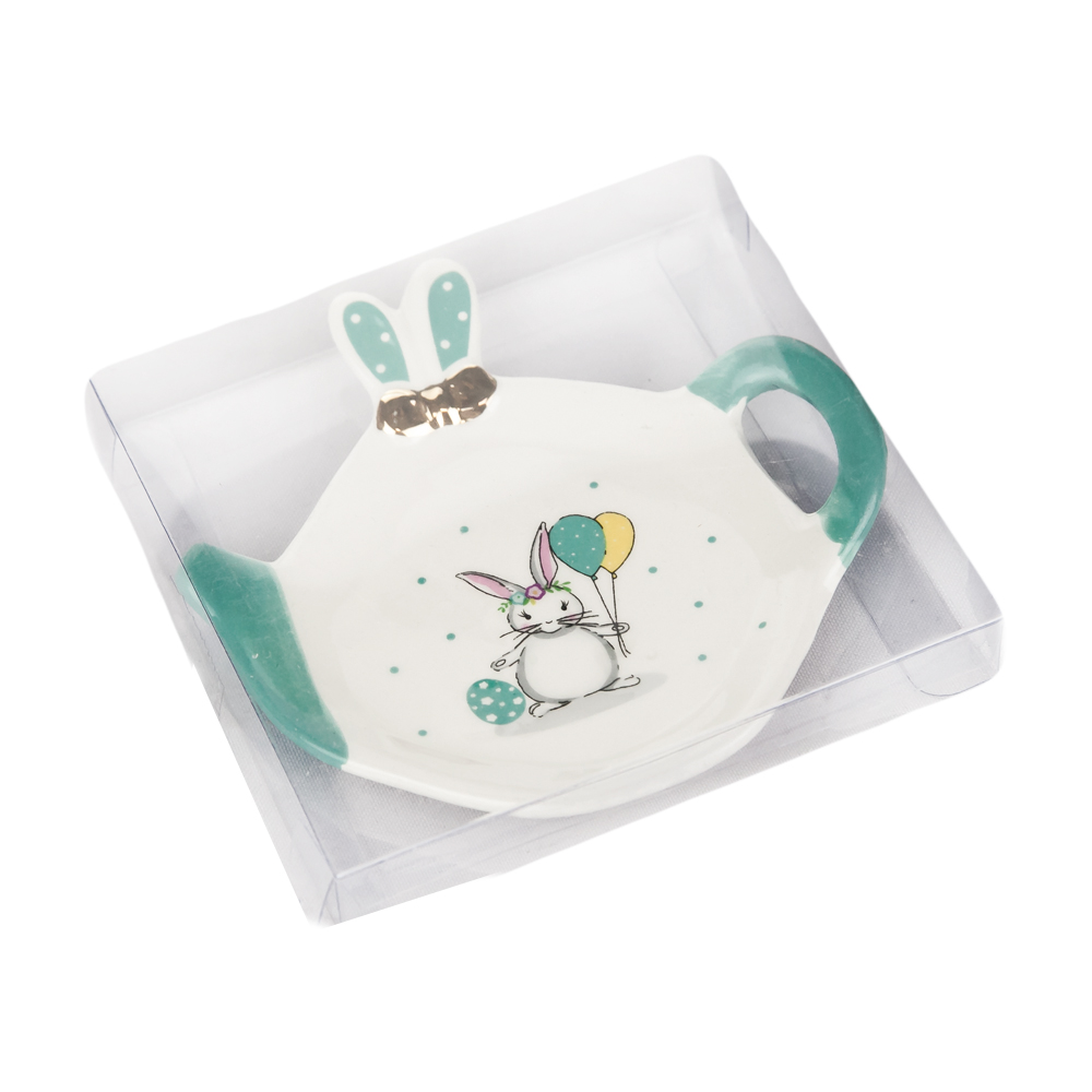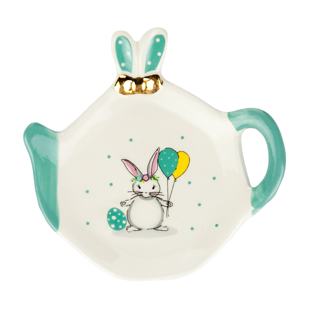 Подставка для чайных пакетиков, выполненная в форме чайничка с изображением милого зайчика, изготовлена из высококачественной керамики. Изделие придется по вкусу любой хозяйке, так как кухонный стол всегда останется чистым, без нежелательных разводов от чайных пакетиков.