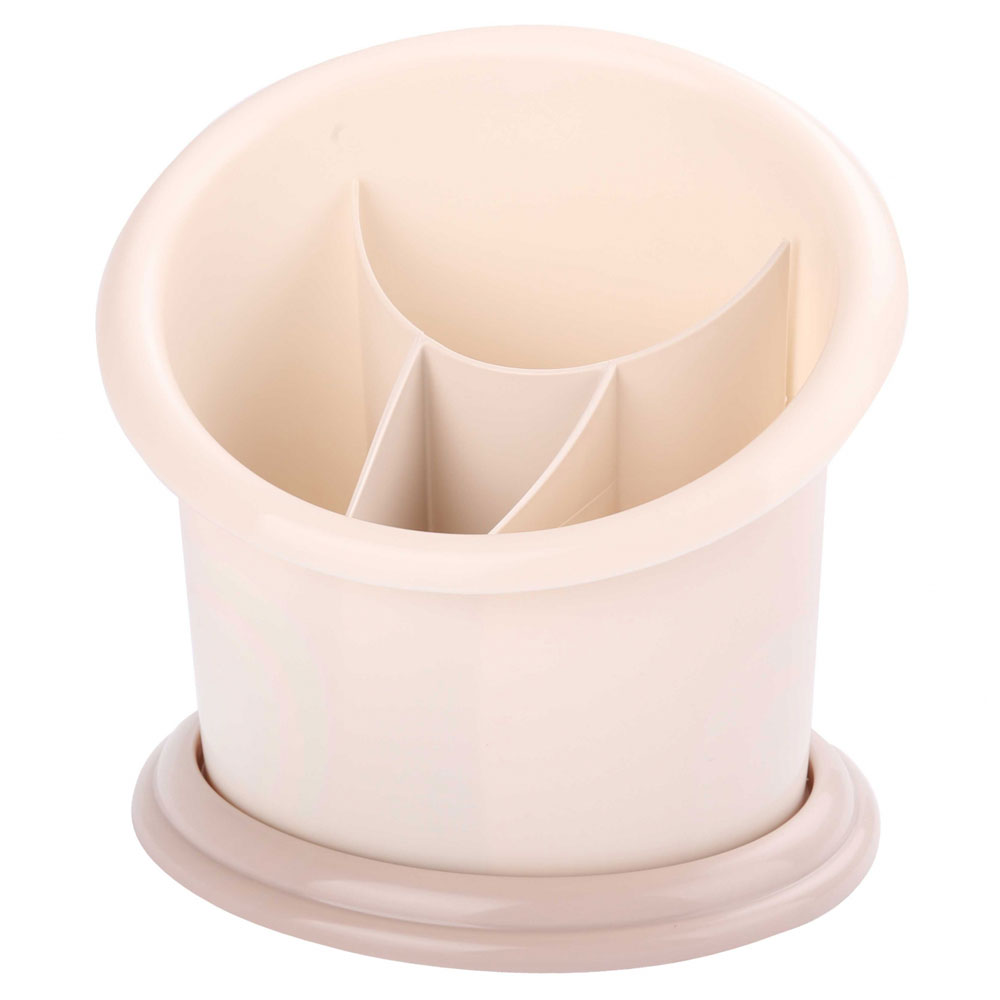Удобная подставка предназначена для сушки и хранения столовых приборов и разных кухонных принадлежностей (половников, лопаток). Изделие обладает достаточной вместительностью и имеет четыре ячейки для раздельного хранения приборов. Поддон позволяет собирать стекающие капли.