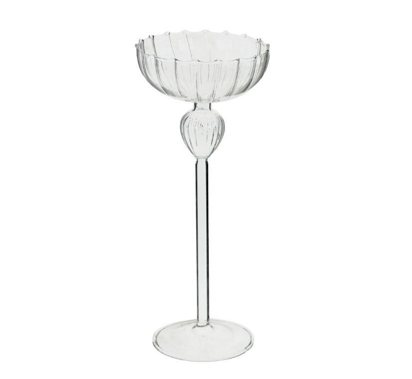 Оригинальный и изысканный подсвечник для одной свечи позволит украсить интерьер Вашего дома. Изделие выполнено из стекла в форме фужера на длинной ножке. С таким элементом декора ужин при свечах наполнится торжественной и праздничной атмосферой. Диаметр свечи до 10 см