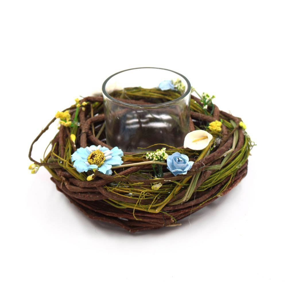 Подсвечник изготовлен из натуральных материалов и стекла.