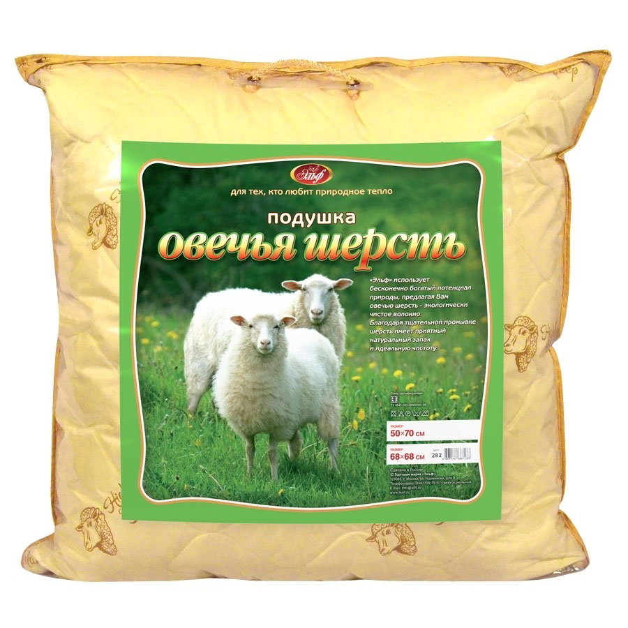 Подушка "Овечка", наполнитель холофитекс в чехле из тика, на молнии, с кантом, 68х68 см, вес наполнителя 1,1 кг.