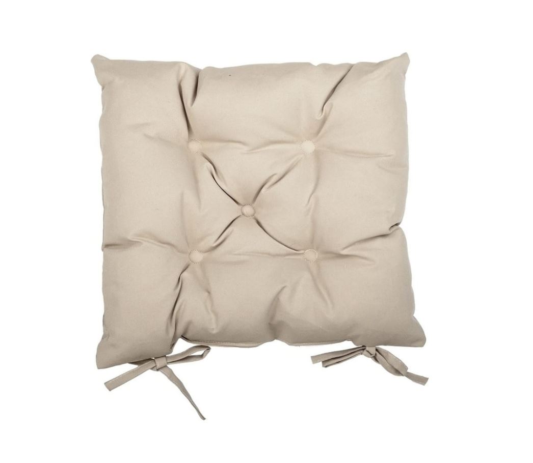 Мягкая плоская подушка для стула, выполнена в современном стиле, декорирована легкой стяжкой. Есть завязки для фиксации. Чехол изготовлен из 100%-го полиэстера, наполнитель мягкий и упругий — полиуретановая пена и короткое волокно.