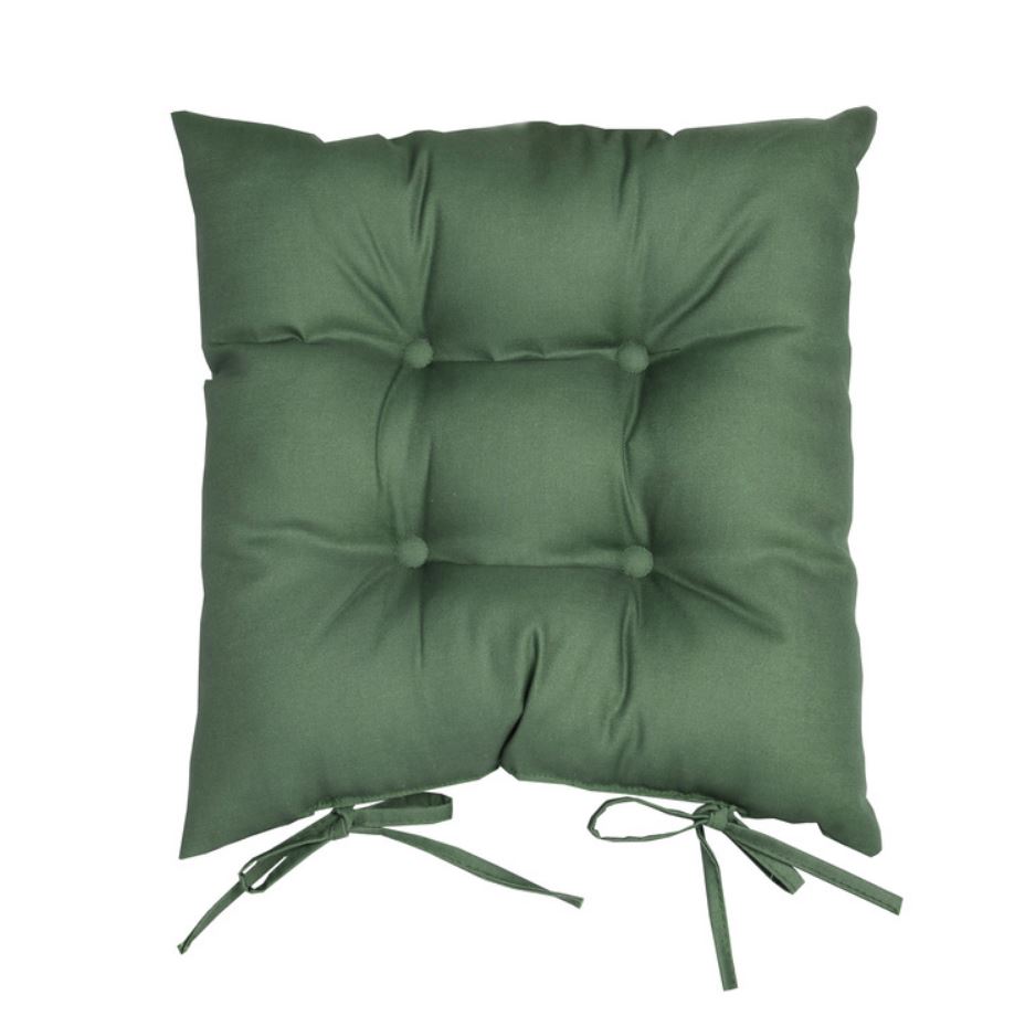 Мягкая плоская подушка для стула, выполнена в современном стиле, декорирована легкой стяжкой. Есть завязки для фиксации. Чехол изготовлен из 100%-го полиэстера, наполнитель мягкий и упругий — полиуретановая пена и короткое волокно.
