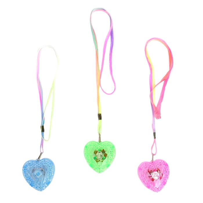 Ожерелье со светящимся кулоном Сердце. Изделие состоит плотного шнурочка и сердечка из пластика, внутри которого расположен светящийся элемент. Звездочку можно включать и выключать.