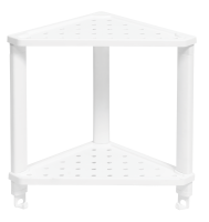 Каркас угловой полочки выполнен из прочного пластика, который не боится сырости и не прихотлив в уходе - достаточно протереть его влажной губкой или промыть под струей теплой воды. На дне полки имеются отверстия, благодаря которым влага не будет накапливаться, даже если установить конструкцию в помещениях с повышенной влажностью.
