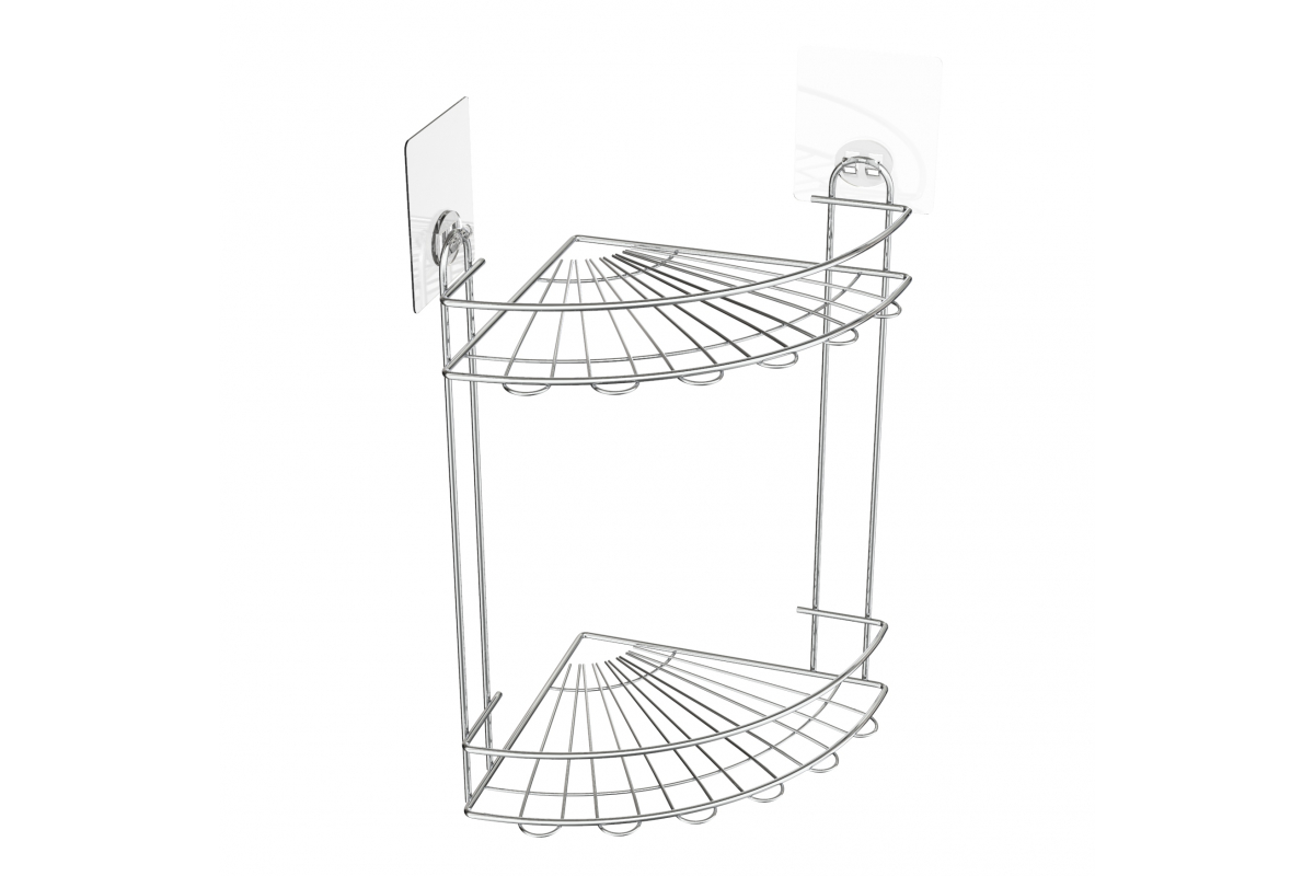 Если Вы не знаете, как правильно разместить все необходимые для ванной комнаты принадлежности, выбирайте полку угловую на силиконовом креплении, двухъярусную.