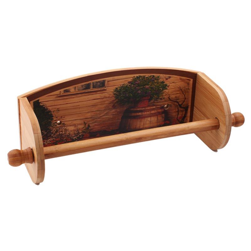 Горизонтальный держатель для бумажных полотенец "Hans&Gretchen" изготовлен из бамбука. Задняя стенка изделия оформлена изящным рисунком. Держатель представляет собой круглый длинный стержень, на который устанавливается рулон с бумажными полотенцами. Изделие подвешивается на стену.