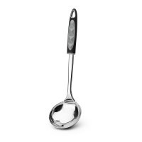 Стальной половник с удобной ручкой. Имеет отверстие в ручке для удобства размещения на вертикальных поверхностях. Предназначен для разлива первых блюд, киселей, компотов. Подходит для мытья в посудомоечной машине.