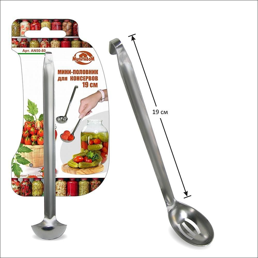 Половник предназначен для извлечения консервированных овощей и фруктов из банок.