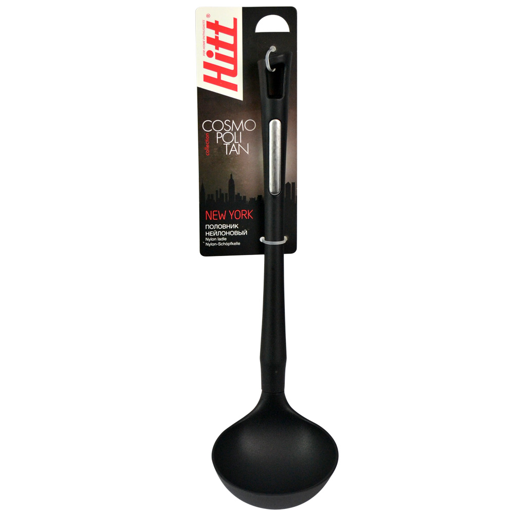 Серия кухонных аксессуаров New York из коллекции Hitt Cosmopolitan идеально подходит для посуды с антипригарным покрытием. Половник изготовлен из термостойкого нейлона, который выдерживает температуру нагрева до 200 градусов.