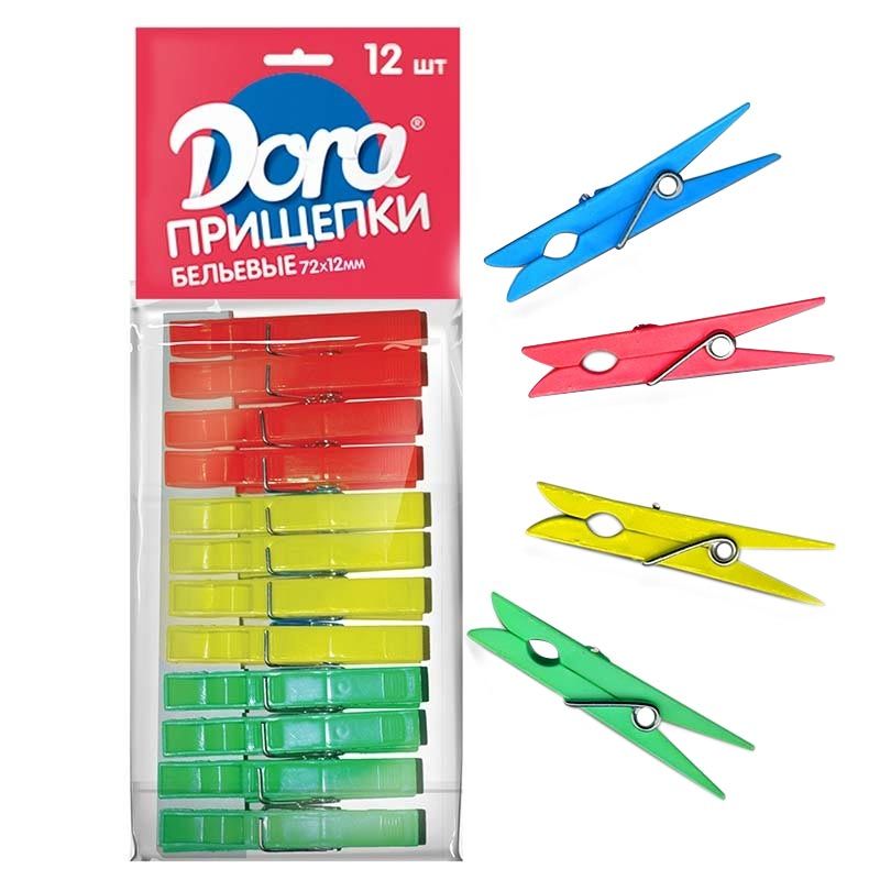 Набор из 12 пластмассовых прищепок, в 4-х цветах.