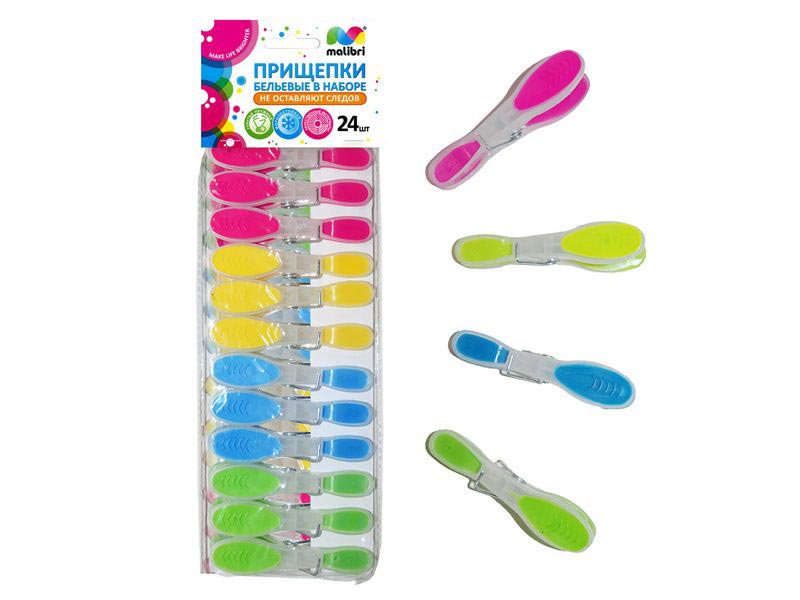 Прищепки бельевые MALIBRI «Для деликатной одежды», 24шт.