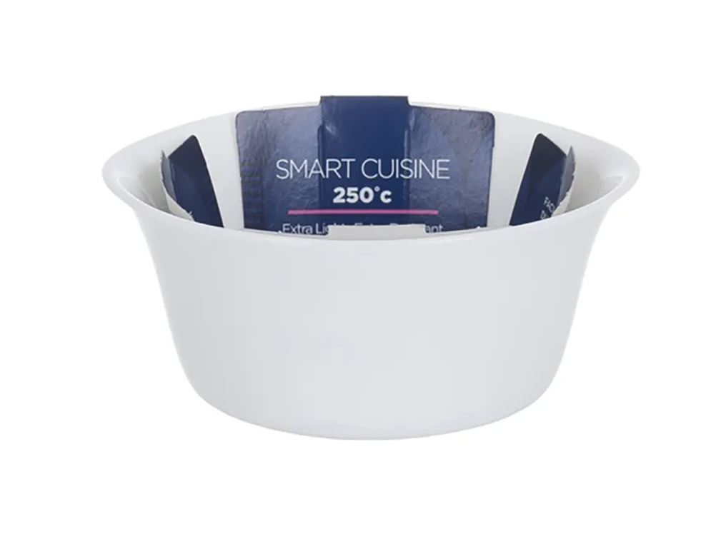 Белая формочка для запекания Smart Cuisine из жаропрочного стекла. Она небольшого размера, подходит для приготовления жульенов, кексов, порционных запеканок. Формочку можно ставить на стол прямо из духовки, как обычную посуду. Выдерживает температуру до 250 С. Можно мыть в посудомоечной машине.