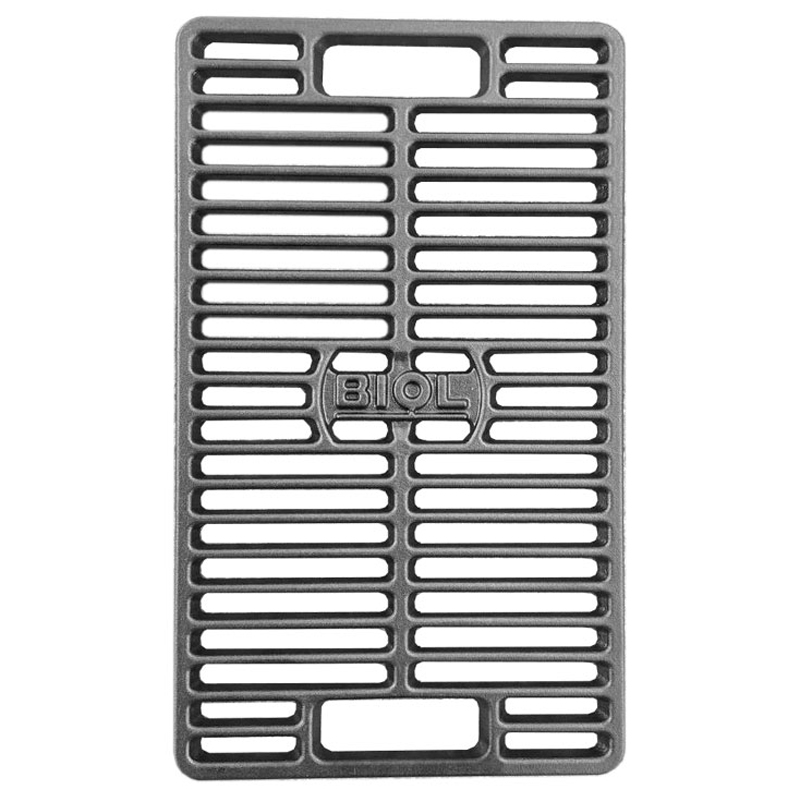 Решетка из чугуна от крмпании Биол станет хорошим помощником для приготовления гриль-блюд на открытом огне. Данное изделие - прекрасная альтернатива шампурам и мангалам. Стейки из мяса и рыбы, шашлыки, лаваши, овощи можно приготовить в любое время и без особых усилий.