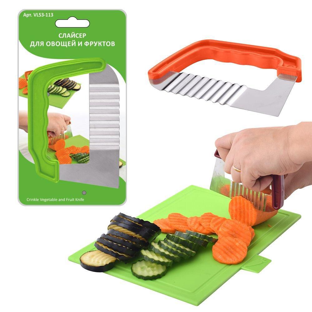 С помощью слайсера для овощей и фруктов, Вы сможете украсить Ваш праздничный стол красиво нарезанными овощами и фруктами. Он станет Вашим незаменимым помощником при нарезке не только овощей и фруктов, но и сыра. Удобная ручка позволит Вам порезать большое количество овощей, не прилагая особых усилий. Волнистые ломтики продуктов будут смотреться очень красиво и привлекут внимание Ваших гостей и домочадцев к трапезе.