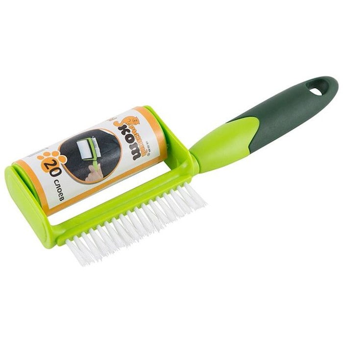 Многоразовый ролик для очистки одежды от шерсти, катушек. Имеет встроенную щеточку. Удобная ручка.